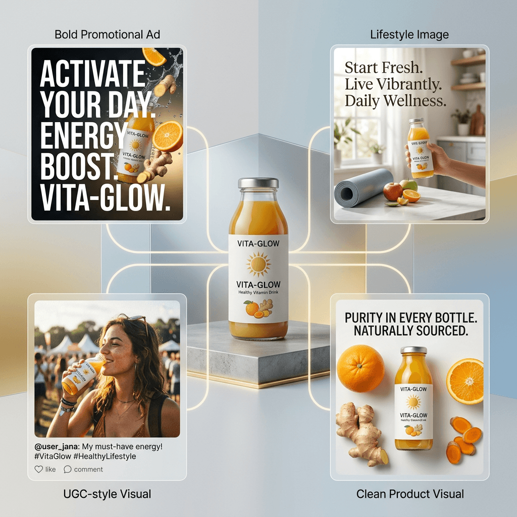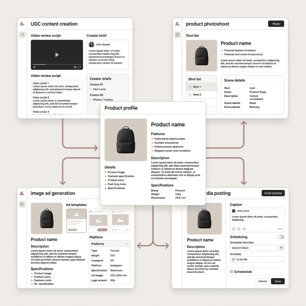 Every new asset starts from scratch. Product details get re-entered. Messaging gets rewritten. Context gets lost between tools.