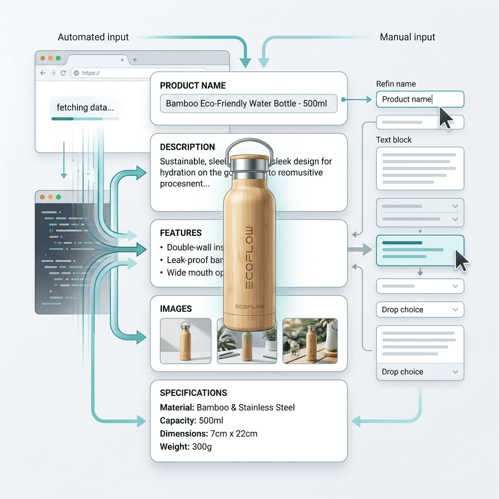 URL-Based Product Creation · Reusable Across Tools · Built for Content Generation