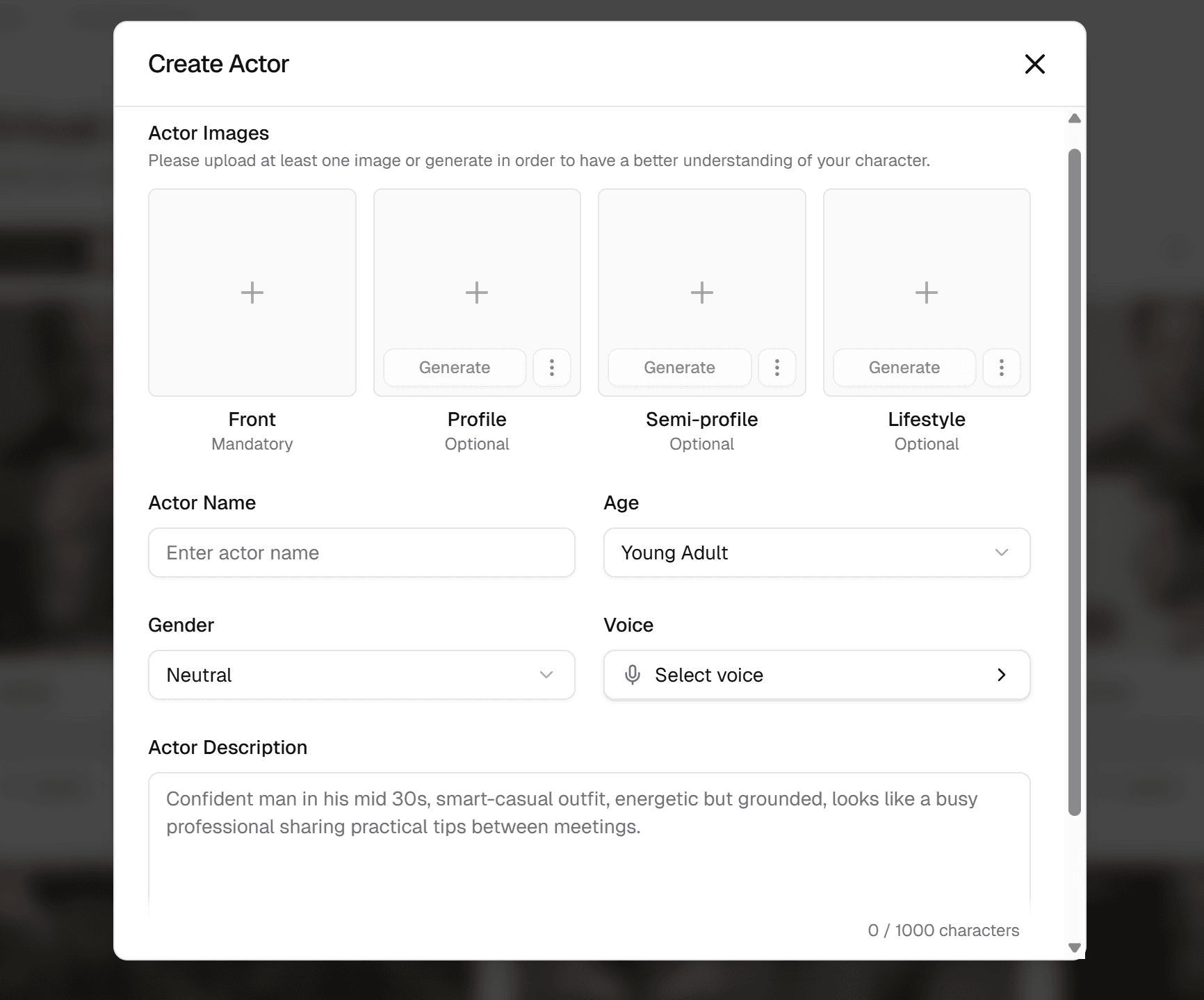 Whether you choose from our expansive library of existing actors or create your own brand representatives from scratch, Kreator lets you: