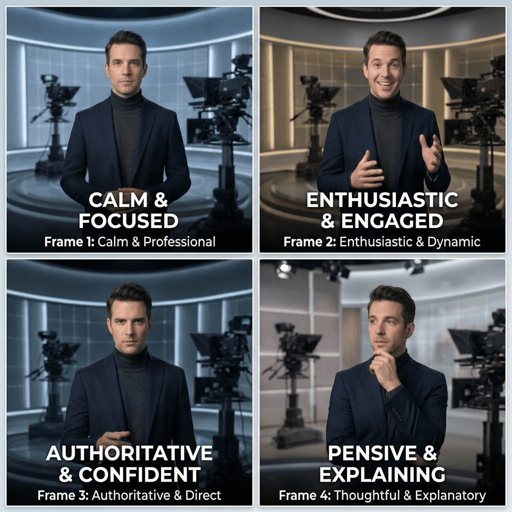 Each new message requires a new take. Testing different angles, different settings, different actors means rebuilding content from scratch and iteration slows down before you ever find what works.