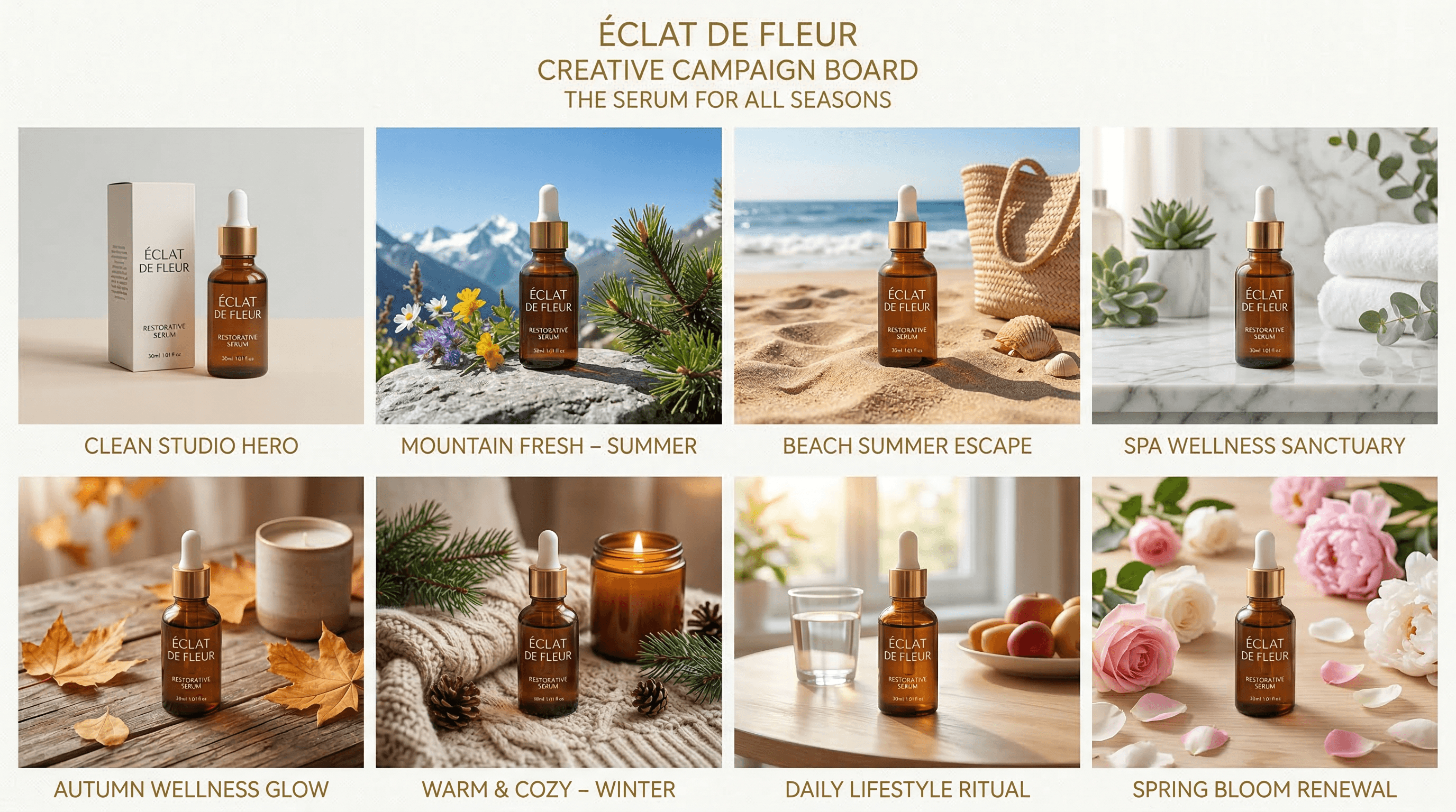 Kreator starts with the real product. The exact shape. The exact logo. The exact packaging. Then it builds the scene around it.