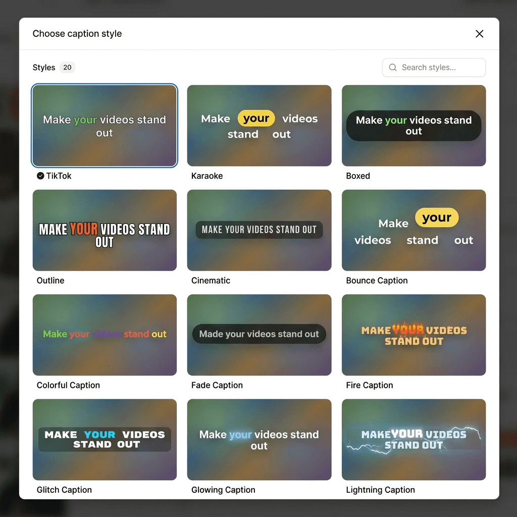 dynamic styles like highlight, karaoke, and animated captions