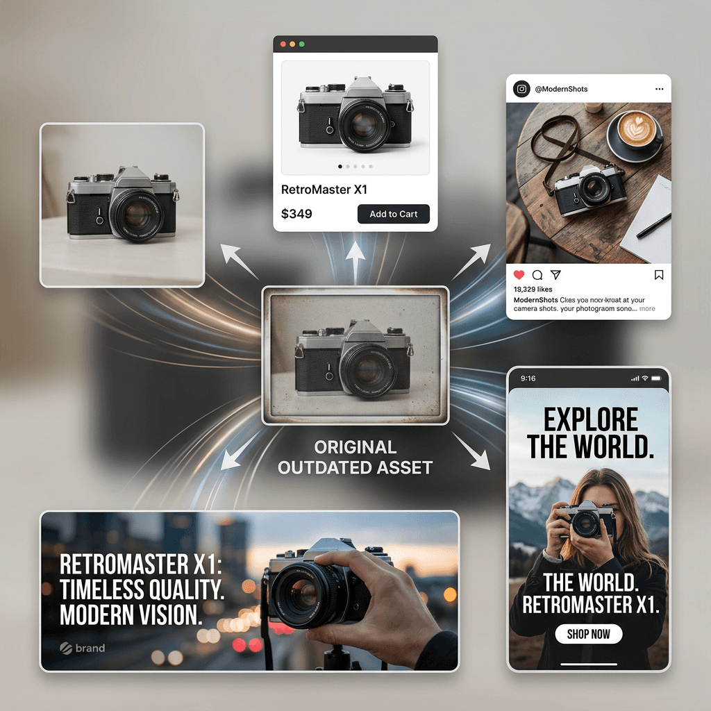 Upscale your images, then reuse them across teams, formats, and channels.