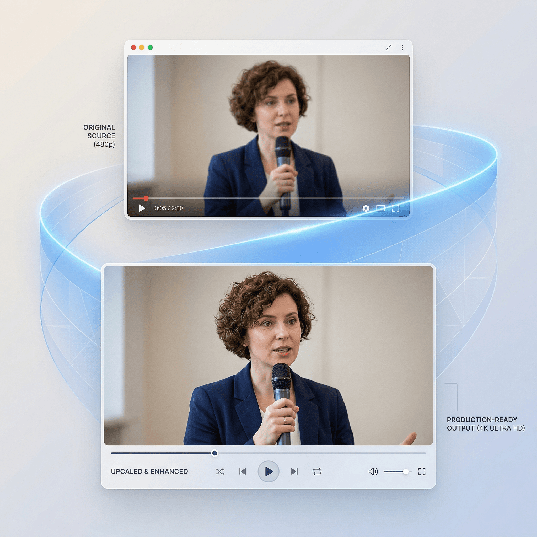Restore Video Clarity · High-Resolution Output · Sharper Motion Detail